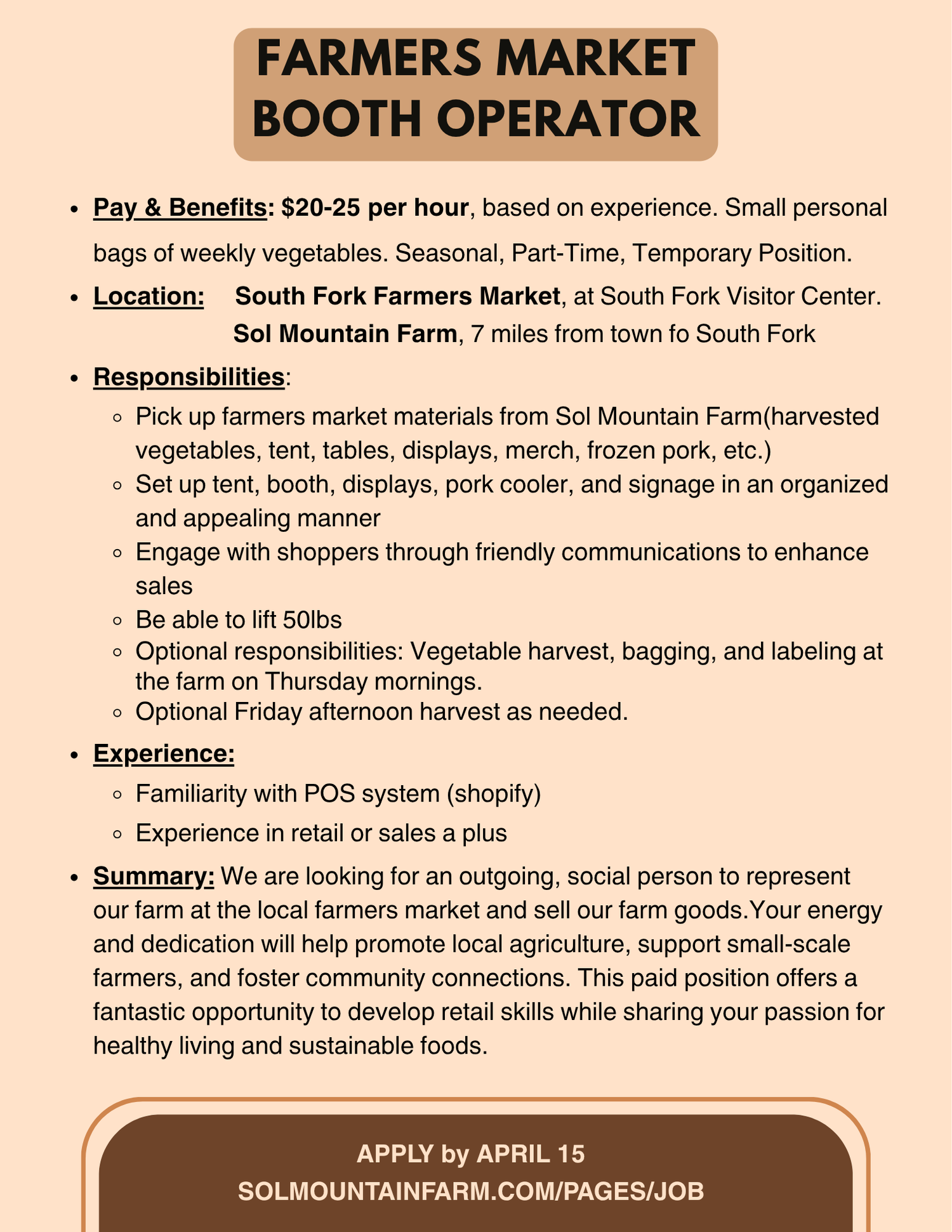 2. Title your email: "Farmers Market Job Application"